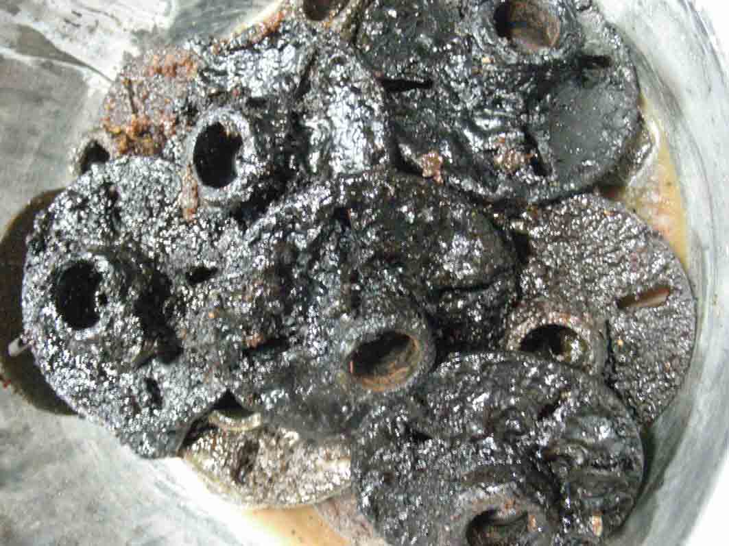 清洗前的烤爐 拆卸下來準(zhǔn)備清洗的轉(zhuǎn)輪 這樣的轉(zhuǎn)輪是火災(zāi)的隱患